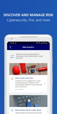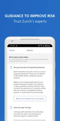 "Zurich Risk Advisor" lihtsustab riskijuhtimist, pakkudes ekspertnõu ja hindamisvahendeid. Avasta riske nagu küberturvalisus, tulekahju, üleujutus ning tööandja ja töötajate vastutus. 750+ riskispetsialisti teadmistel loodud rakendus aitab tuvastada ja vähendada ärispetsiifilisi riske otse teie telefonist.